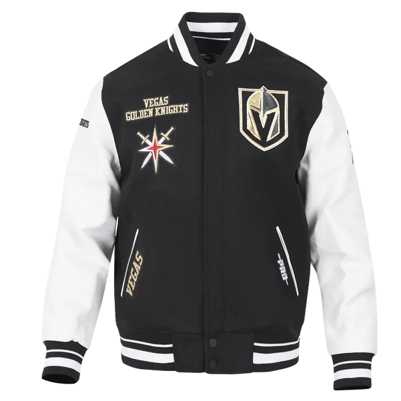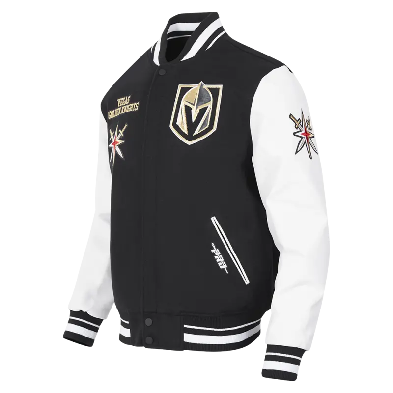 NHL VEGAS GOLDEN KNIGHTS RETRO CLASSIC MEN’S RIB WOOL VARSITY JACKET (BLACK\/WHITE)