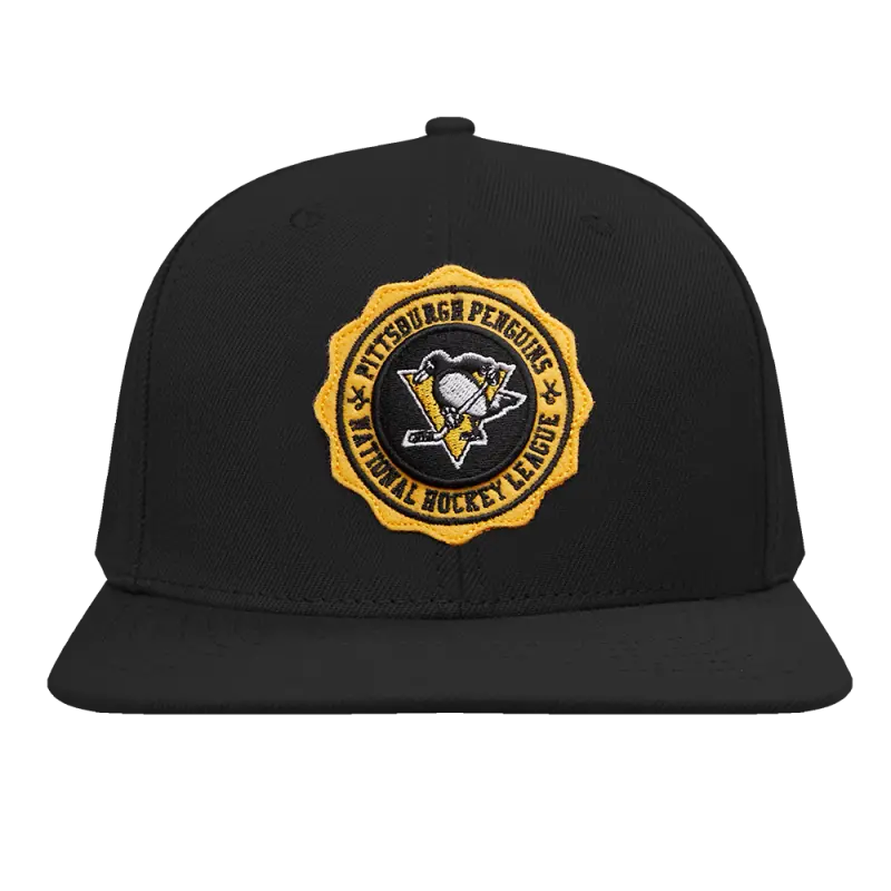 NHL PITTSBURGH PENGUINS CREST EMBLEM WOOL SNAPBACK HAT (BLACK)