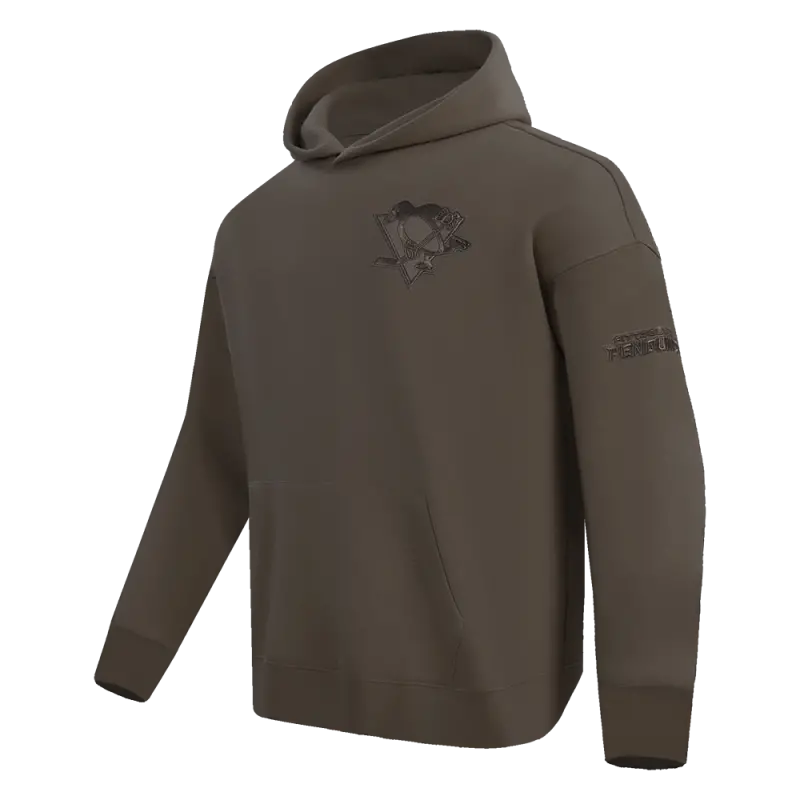 NHL PITTSBURGH PENGUINS NEUTRAL MEN’S DROP SHOULDER PULLOVER HOODIE (DARK TAUPE)
