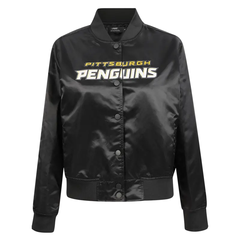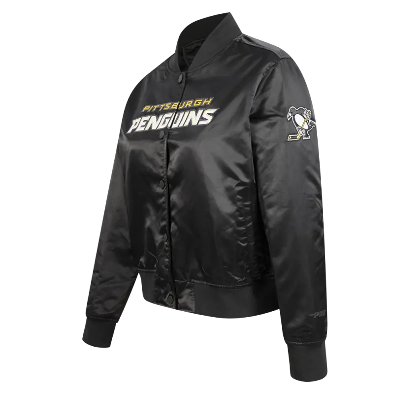 NHL PITTSBURGH PENGUINS CLASSIC WOMEN’S SATIN JACKET (BLACK)