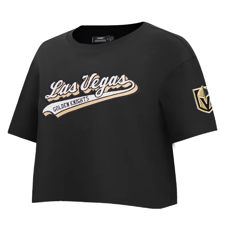 NHL VEGAS GOLDEN KNIGHTS SCRIPT TAIL WOMEN’S SINGLE JERSEY BOXY TEE (BLACK)