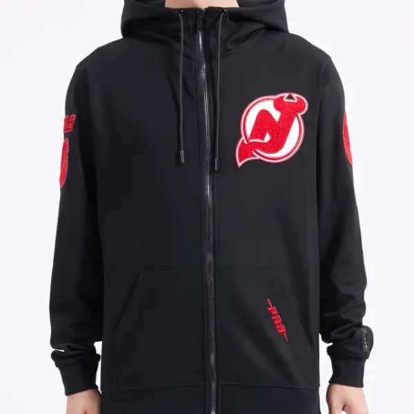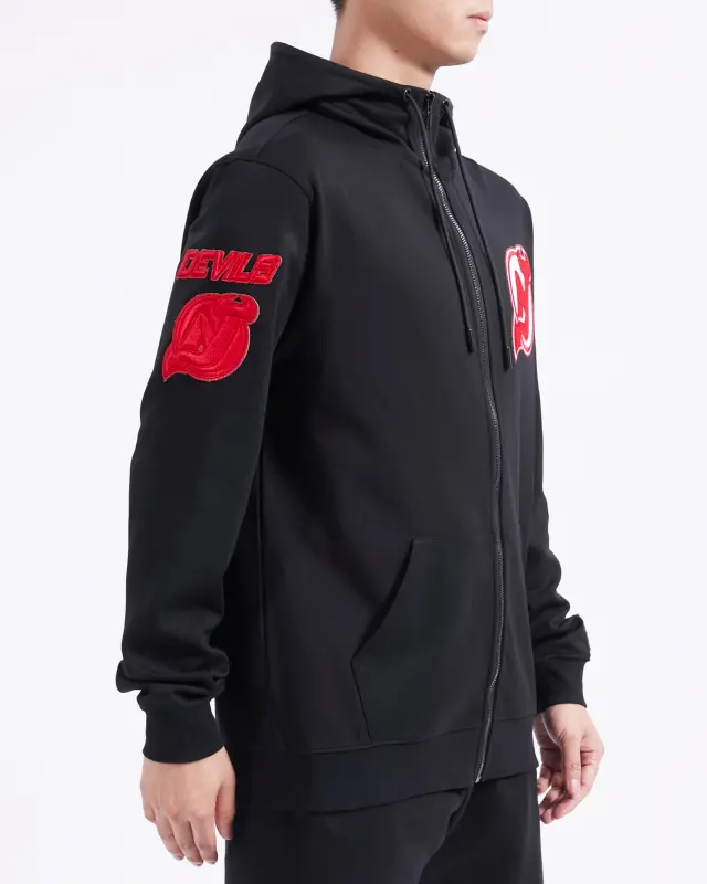 NHL NEW JERSEY DEVILS TC TONAL OUTLINE MEN’S DK FZ PO HOODIE (BLACK)