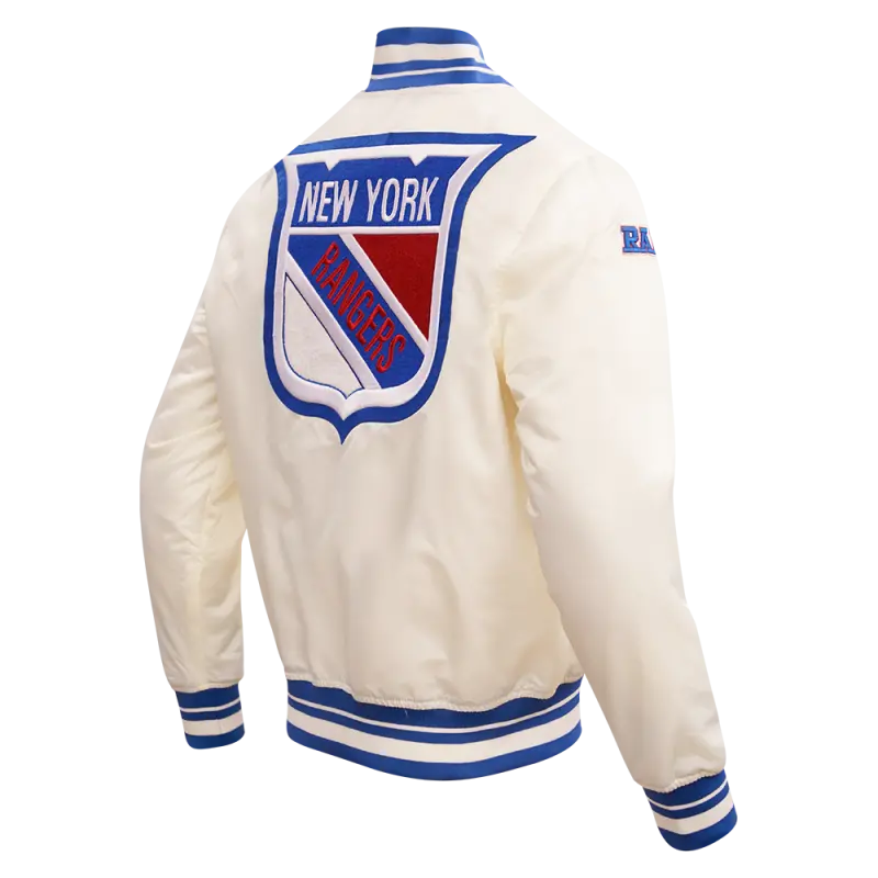 NHL NEW YORK RANGERS RETRO CLASSIC MEN’S RIB SATIN JACKET (EGGSHELL\/ROYAL BLUE)
