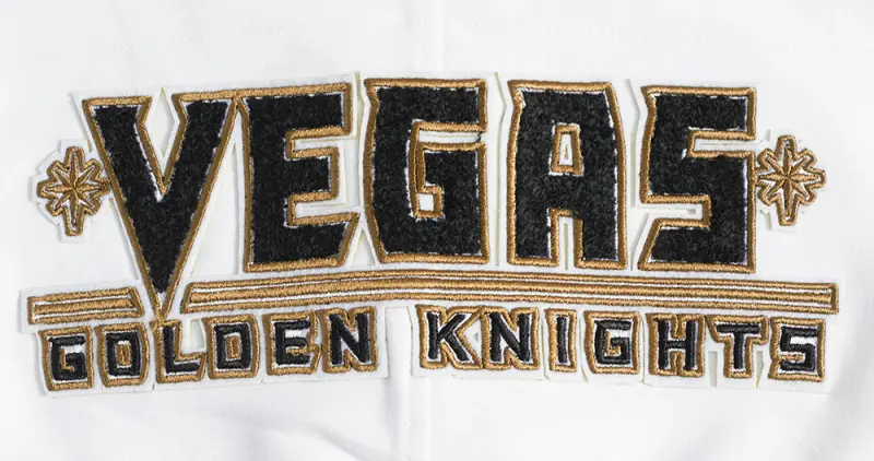 NHL VEGAS GOLDEN KNIGHTS CLASSIC CHENILLE MEN’S PULLOVER HOODIE (WHITE)